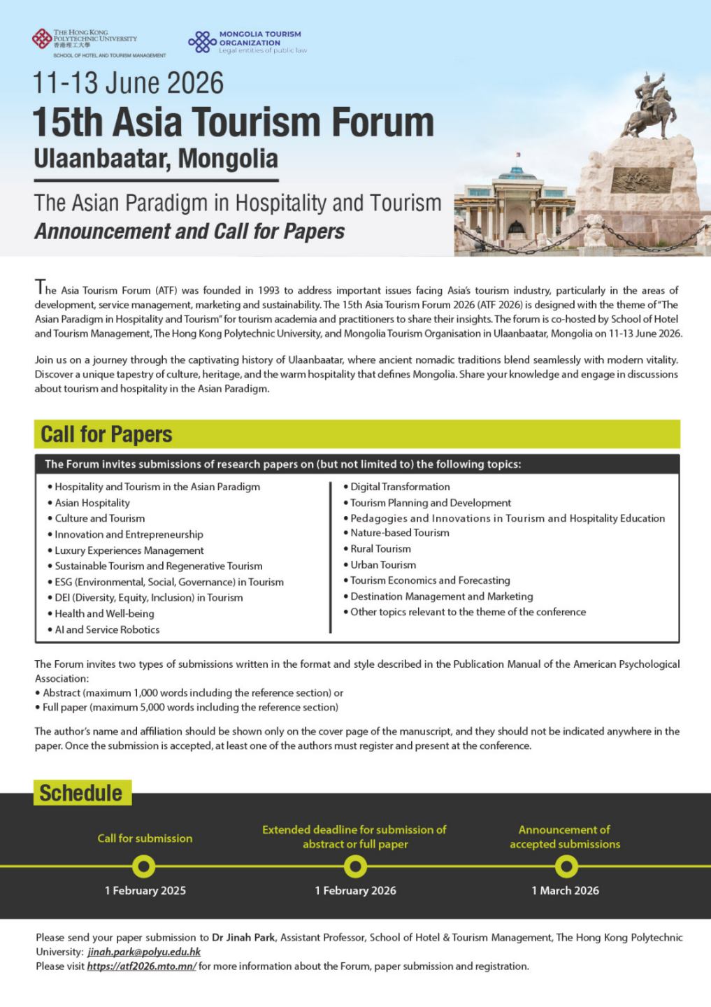 Prof Jinah Park, Assistant Professor, School of Hotel and Tourism Management, The Hong Kong Polytechnic University:jinah.park@polyu.edu.hk
